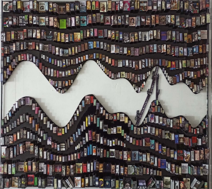 Sanatçı Engin Beyaz'ın "Sanal Kütüphane" adlı kişisel sergisi, 15 Ocak - 03 Şubat 2022 tarihleri arasında Galeri Diani'de gerçekleşiyor. Engin Beyaz, İstanbul öncesi yaşadığı ortam gereği daha çok topluma açık kalabalıkların kullandığı mekanları sergi alanı olarak seçmiş böylece yaptığı yerleştirmelere toplumu ve izleyiciyi de dahil etmeyi çok önemsemiştir. Sırp edebiyatının önde gelen yazarlarından Zoran Zivkovic, 2003 yılında Dünya Fantezi Ödülüne değer görülen "Başka Zaman Kütüphaneleri" adlı eserinden derinden etkilenen Engin Beyaz, bu eserin Zoran Zivkovic'in "Kitaplar kadınlara (insanlara) kadınlar şehirlere benzer, onlar aslında boştur biz onları zamanla tanıdıkça ve yaşadıkça, okudukça doldururuz" satırlarından etkilenerek eserlerinde asetattan yaptığı kitapların içlerini boş bırakıyor. İçlerini düşlerle doldurmayı biz izleyicilere bırakıyor.