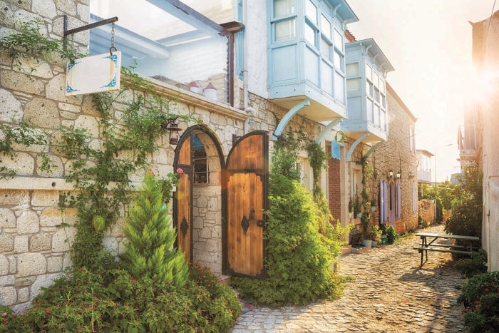 İnce ruhların ifadesi begonviller, sardunyalar, Alaçatı’nın zarafetine ve sadeliğine de bir gönderme sanki.