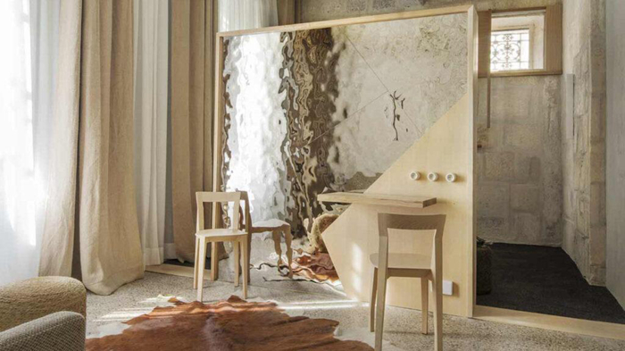 Güney Fransa'nın Arles şehrinde yer alan Le Collatéral, sadece dört odalı bir otel. Bu da mekanın ne kadar özel olduğunun altını çiziyor. Anne-Laurence Schiepan ve eşi Philippe, eski bir Orta Çağ kilisesini dönüştürerek ortaya bir sanatçı konukevi, sergi ve atölyeler için bir kültür merkezi çıkarmayı hedefledi. Çıplak beton ve tuğlalar, ahşap ve metal merdivenler ve çok sayıda minimalist veya geometrik şekilli mobilya otelin iç tasarımını yaratıyor. Oteldeki eserler arasında Reeve Schumacher ve Erick Helaine gibi isimlerin çalışmaları ve 35 metrekarelik bir kütüphane de yer alıyor.