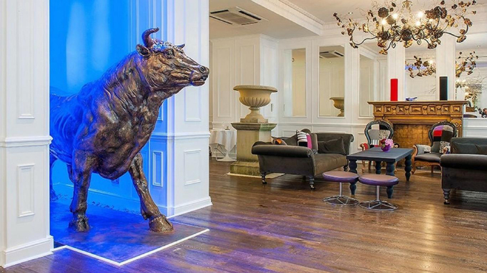 İngiltere, Londra'daki The Exhibitionist Hotel, ismiyle bile içinde nasıl cevherler sakladığını merak ettirmeyi başarıyor. Bu sanat oteli; Royal Albert Hall, Saatchi Gallery ve Victoria & Albert gibi önemli müze ve galerilerin yer aldığı South Kensington'da bulunuyor. Girişte misafirleri karşılayan boğa heykeli, mekan ve sanat arasındaki etkileşimin tonunu belirliyor. Şık ve modern avizeler, göz alıcı heykeller, pop art freskler ve geçici sergilere kadar sanat, bu otelin her yönüyle ayrılmaz bir parçası. The Exhibitionist, konuklarını rahatça sanatla buluşturmak için sekiz galeri alanına sahip.