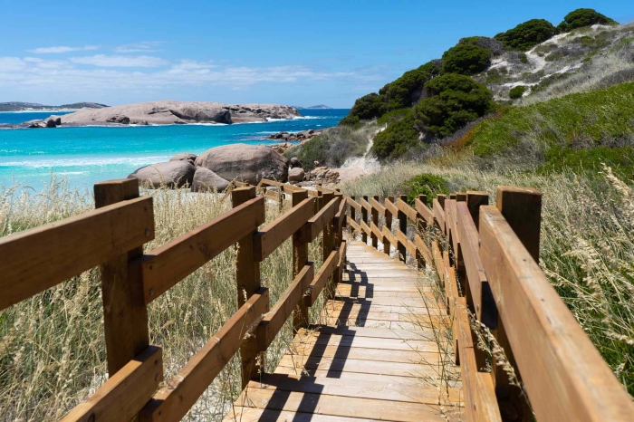Cape Le Grand Ulusal Parkı, her biri diğerinden daha güzel ve özünde Avustralyalı olan birkaç farklı plaja ve koya ev sahipliği yapmakta. Le Grand Coastal Trail rüzgarı, çalılıklı fundalıklar ve kayalık uçurumlardan geçerek Hellfire Bay'i (granit kayalar, berrak mavi su ve kavisli bir plajın muhteşem bir manzara oluşturduğu yer) ve Lucky Bay'i (dünyanın en beyaz kumlarından bazılarının bulunduğu yer) ziyaret eder. Kuşbakışı bir manzara için kır çiçeği serpiştirilmiş 2.4 kilometre Frenchman Peak Trail'de yürüyüş yapabilirsiniz.