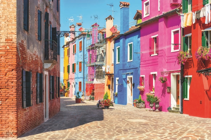 Venedik Lagünü’nün kuzeyinde yer alan Burano, İtalya’nın iz bırakan noktalarından biri. Rengarenk, kutu kutu evlerle dolu etkileyici bir ada olan Burano, Venedik’e gelenlerin ziyaret ettiği destinasyonlardan. Üç kanaldan dört parçaya bölünen Burano Adası; San Mauro, Giudecca , San Martino ve Terranova bölgelerinden oluşuyor. Piazza Galuppi, San Martino Kilisesi, Gian Battista Tiepolo, Santa Barbara Şapeli, Museo del Merletto (Dantel Müzesi), İstria Taşı, Baldassare Galuppi Heykeli adanın görülmesi gereken noktalarından. Küçük bir ada olan ve çok az otel bulunan Burano’da, meyve bahçesi ve üzüm bağlarıyla çevrili Venissa’da konaklayabilirsiniz. Balıkçı adası olan Burano’da taze deniz ürünleri ve ev yapımı makarna için Trattoria al Gatto Nero’ya; risotto’ları ve yengeçleri için Trattoria da Primo e Paolo’ya; sardalya, ahtapot, karides ve pek çok balık ürünü için Trattoria da Romano’ya; gurme lezzetler için Michelin yıldızlı Venissa Restaurant’a gitmenizi tavsiye ederiz. Burano’dayken yapılacak bir diğer şey de yerel lezzetlerden S şeklinde bir bisküvi olan Bussolà’yı tatmak. Sarı, mavi, yeşil, pembe ve daha birçok pastel renge boyalı evleriyle cazibe merkezi olan adada, diğer dikkat çeken şey ise Burano dantelleri. Adanın adını dünyaya duyuran Burano dantelleri, zamanında Avrupa saraylarının gözdesiyken şimdilerde ise adayı ziyaret edenlerin alışveriş listesinde üst sıralarda yer alıyor. Dar kanallar boyunca sıralanmış evleri ile ziyaretçileri büyüleyen Burano’da aklınıza gelebilecek her renk tonuna rastlamanız mümkün.