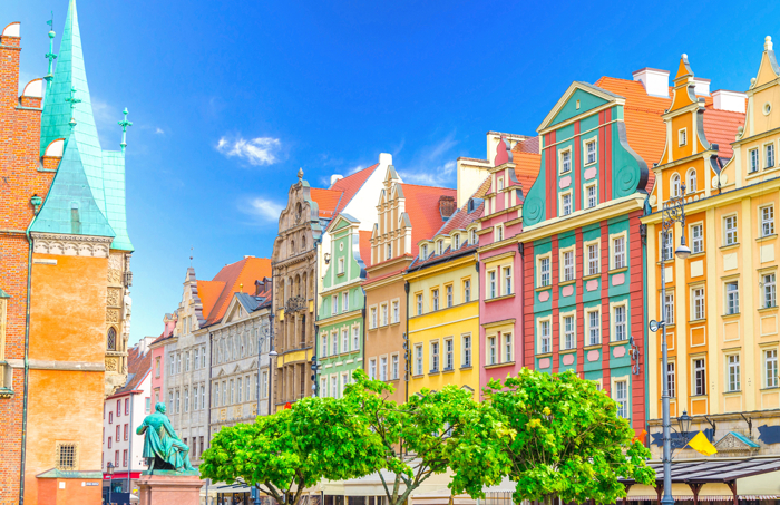 Polonya'nın güneybatısında, Oder Nehri'nin kolları üzerine kurulmuş Wrocław da rengarenk binaları, köprüleri ve meydanlarıyla adeta bir Avrupa masalının içinden çıkmış gibi hissettiriyor. 100'den fazla köprüyle "Polonya'nın Venedik'i" olarak da anılan şehir, özellikle Rynek yani "Eski Şehir Meydanı" ile büyülüyor. Burada sıralanan pastel tonlardaki tarihi binalar, gotik belediye sarayı ve kafelerle çevrili sokaklar, şehre benzersiz bir kimlik kazandırıyor. Şehrin en dikkat çekici yanlarından biri, cephelerin çeşitliliği; nane yeşili, açık sarı, turuncu ve pembenin en neşeli tonları, adeta tabloyu andıran bir bütünlük oluşturuyor. Yaz akşamları sokak müzisyenlerinin melodileri bu renklerin arasında yankılanırken, kışın karla kaplanan binalar masalsı bir kontrast yaratıyor.