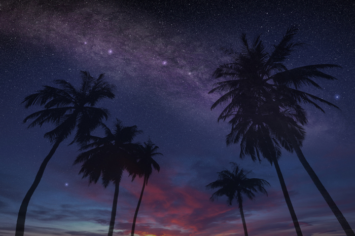 Hawaii'nin volkanik adaları ile Maldivler'in mercan adaları, tropikal iklimde yıldız ve kuyruklu yıldız gözlemleri için eşsiz. Gece gökyüzü, engin okyanus ve doğal manzaralarla birleşerek izleyenlere etkileyici bir görsel şölen sunuyor. Tropikal adalarda, sahil kenarında yıldızları seyretmek, gökyüzünü keşfetmeyi adeta bir ritüel hâline getiriyor. Hafif esen rüzgâr ve dalgaların sesi, gözlemi sadece görsel değil, tüm duyulara hitap eden bir hale getiriyor.