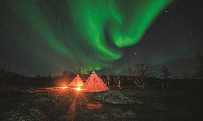 Nordik halkların igloları ya da Samilerin “laavu”ları kulağa çok ilginç geliyor ama ben kamp insanıyım, Kuzey Işıkları’nı izlerken Samilerden ren geyiği besiciliğini, buzda balık tutmayı, haskilerle kızak sürmeyi öğrenmek istiyorum diyorsanız Teepee Wilderness Camp tam size göre. Laponya, göçebe ren geyiği çobanlarının kullandığı “kotas” veya “teepee” çadırlarının ana vatanı. Bu otantik çadırları yeni nesil lüks anlayışı ile yeniden yorumlayan Teepee Wilderness Camp, yüksek kalite keten kumaşlar ve usta şeflerin kamp ateşinde hazırladığı gurme lezzetler ile aileler için ideal. Kuzey Işıkları’nın nefes kesici renklerini seyredebileceğiniz kampta elektrik olmasa da sauna ve LED aydınlatma mevcut.