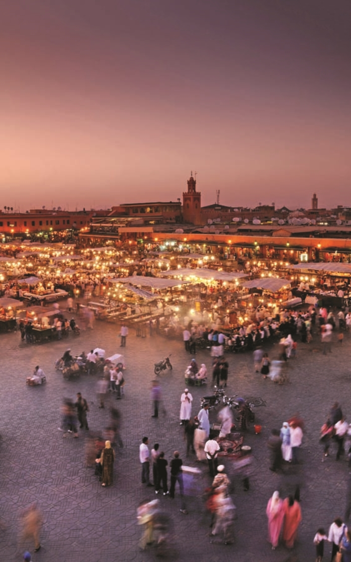 Kızıl şehir olarak da bilinen Marakeş, iki bölgeden oluşuyor: Otantik ve turistik olan bölgesi Medina, modern olan ise Gueliz.
