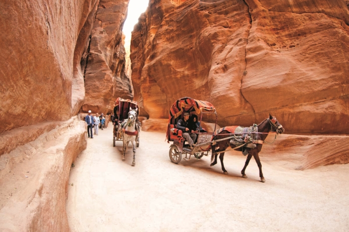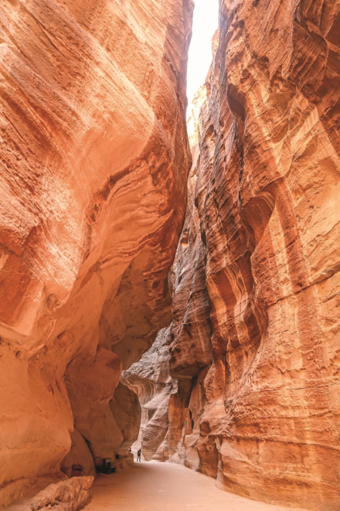 Petra’ya ‘rose city’ yani ‘gül şehri’ deniyor. Etrafta gül falan olduğundan değil; bölgedeki kayalarda yüksek miktarda demir oksit bulunduğu ve güneş ışınlarının etkisiyle pembenin, kırmızının birçok tonunu yansıttığı için bu ismi almış. Kent bir kanyonun ortasında. Etrafınızda taşın en büyüleyici hallerini görüyorsunuz. Kaya bloklarının muhteşem bir işçilikle tapınağa, tiyatroya, mezara dönüşümü var. Zaten Petra, Yunanca ‘taş, kaya’ anlamlarına geliyor. Hatta 12 Havari’den biri olan Aziz Petrus’un ismi de bu anlamdan geliyor. Çünkü Hz. İsa’nın azize, “Senin bana inancın kaya gibi sağlam” dediği ve bu nedenle Petrus ismini verdiği söyleniyor.