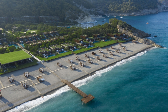 Tam kalbinde konumlandığı muhteşem doğaya duyduğu minneti her alanında hissettiren tesis, evrenin dört ana elementi olan toprak, ateş, su ve hava esas alınarak tasarlanan mimarisiyle dikkat çekiyor. 200 dönümlük bir alan üzerine konumlanan tesis, dört elementin gücünü lüks tutkusuyla buluşturarak mimarisinden mobilya formlarına, restoran alanlarından açık alan peyzajına kadar her köşesinde farkını yansıtmayı başarıyor.