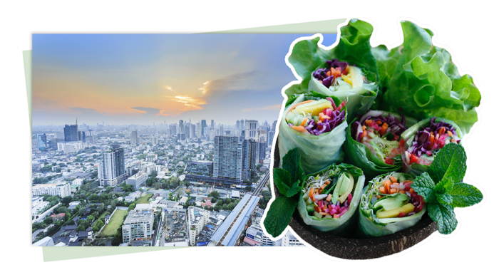 Tayland'ın başkenti Bangkok, vegan restoran sahnesinin de güçlü rakiplerinden. Tropik meyveleri, taze ürünler sunan market ve pazarları, vegan olmaya en yakın mutfaklardan Thai lezzetleri ile Bangkok, hem vegan ve vejetaryenler hem de sağlıklı beslenme düşkünleri için harika bir şehir. Tayland'da vegan olmadığı halde pek çok restoranda vegan veya kolaylıkla vegana çevrilebilecek yiyecekler bulabilirsiniz. Yalnızca çoğu yemekte kullanılan balık sosunu istemediğinizi belirtmeniz yeterli. Bangkok'da ise tamamen vegan 130 işletme bulunuyor ve bunların 99'u restoran. Sandviç ve burgerleriyle bilinen Eat.Co, vegan kafe The Earthling Cafe, vegan şarküteri Barefood Bangkok, sevilen modern restoranlardan Broccoli Revolution, mutlaka uğramanız gereken mekanlardan yalnızca birkaçı.