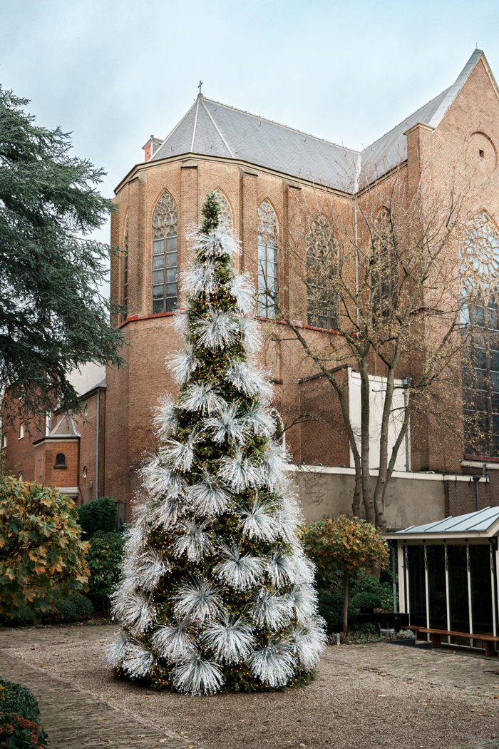 Pulitzer Amsterdam, Hollanda 5 Ocak tarihine kadar otelin bahçesinde yer alan dokuz metre yüksekliğindeki Noel ağacı, sezonun görsel merkezlerinden biri olarak konumlanıyor. Laport'un heykelsi formlardan ve mimari çizgilerden ilham alan tasarım dili, ağaç süslemelerinden bar menüsündeki özel kokteyllere kadar farklı alanlarda kendini gösteriyor. Bu iş birliği, otelin yılbaşı dekorasyonunu klasik anlayıştan çıkarıp daha çağdaş bir çerçeveye taşıyor.