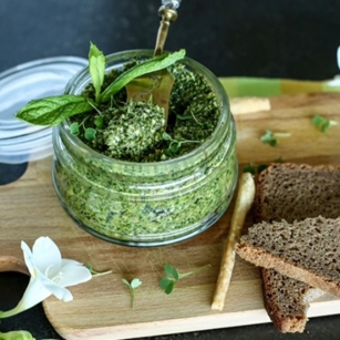 En son üzerine kıyılmış maydanoz, kişniş, nane ve ince doğranmış Meksika biberini serpin.
