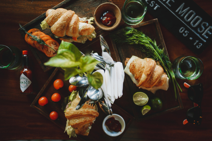 Fırını önceden 180°C'de ısıtın. Kruvasanları ortadan ikiye kesip fırın tepsisine dizin. Kruvasanları jambon, peynir ve domates dilimleriyle doldurup dilediğiniz baharatlarla lezzetlendirin. Peynir eriyene kadar 8-10 dakika pişirin. Doğranmış taze otlar serpip servis edin.