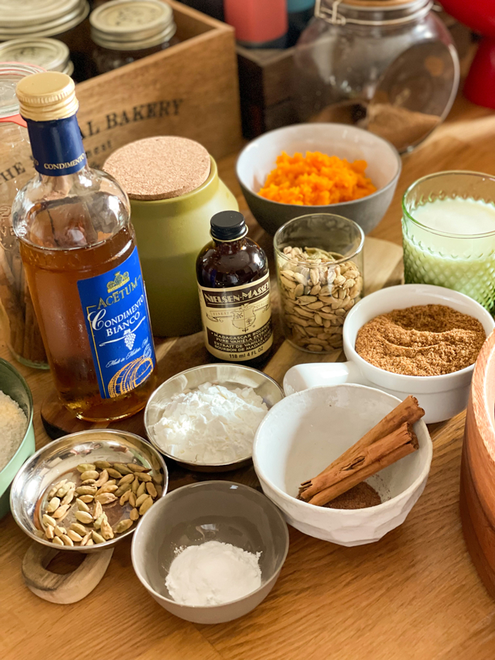 2. Bal kabağı püresi, yağ, süt, şeker ve sirkeyi orta boy bir kasede karıştırın.