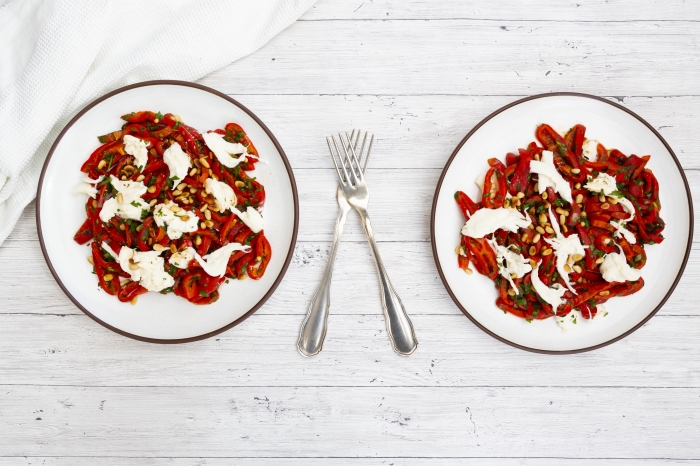 Marulları ve közlenmiş kapya biberini spagetti gibi uzun uzun doğrayın. Daha sonra ince ince doğranmış ceviz ve yoğurdu salataya ekleyerek karıştırın.