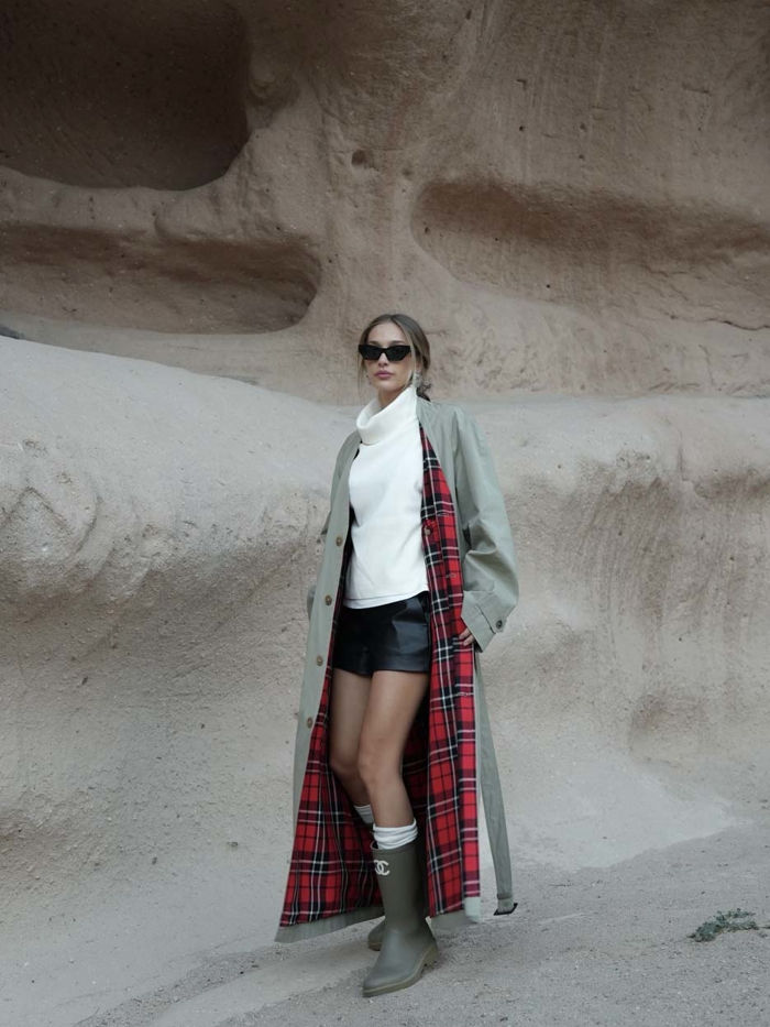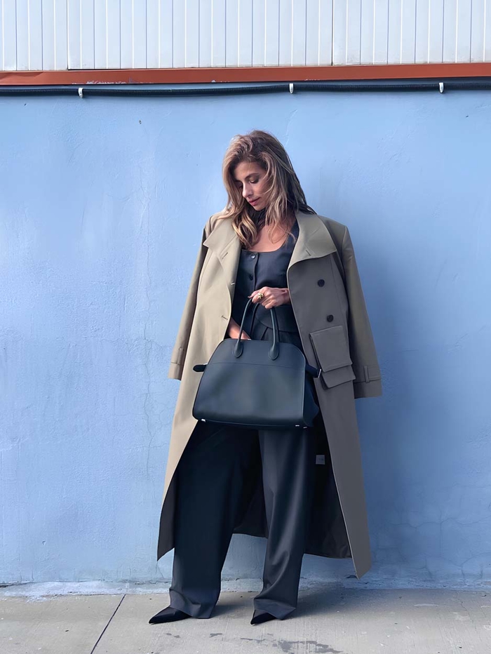 Mina CeranÖte yandan Mina Ceran'ın pastel Balenciaga trençkotunu görünümünün yıldız parçası hâline getirişi, dış giyimin tamamlayıcının ötesinde, anlatının merkezi olabileceğini gösteriyor.
