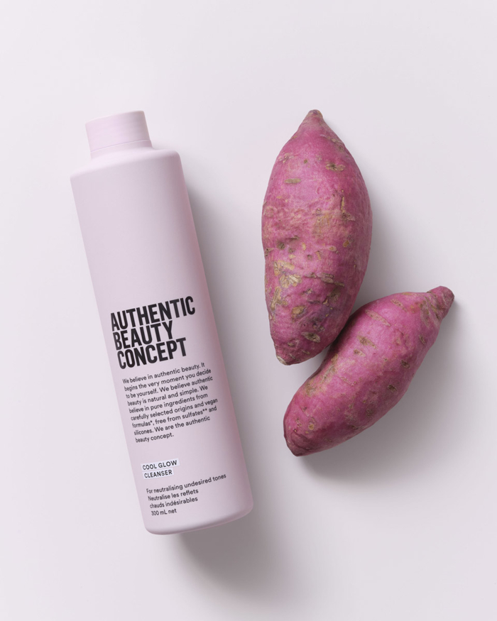Authentic Beauty Concept'in Cool Glow Cleanser şampuanı, benzersiz mor tatlı patates özleri de dahil olmak üzere birçok değerli bileşen içeriyor. Ürün, saç tellerini nazikçe temizleyip beslerken, güçlü mor pigmentler sayesinde de saçlara canlandırıcı soğuk tonlar kazandırıyor. Tüm sarı saç tipleri için uygun olan ürün, yine mor pigmentler ile istenmeyen sarı tonları nötralize ediyor. Yenilenmiş, parlak bir ışıltı için saçın doğal vurgularını iyileştiriyor.