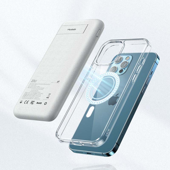 5.000 mAh, 10.000 mAh ve 20.000 mAh'lık seçenekleriyle kablosuz şarj imkanı sunan yeni Mcdodo MagSafe Powerbank, zarif ve ince tasarımıyla telefonunuzla bütünleşiyor ve güçlü mıknatısıyla asla ayrılmıyor. Ultra ince tasarımıyla ısınmaya karşı özel koruması da olan Mcdodo MagSafe Powerbank'ler, kablosuz şarj özelliği olan diğer tüm mobil telefonlarla da uyumlu çalışıyor.