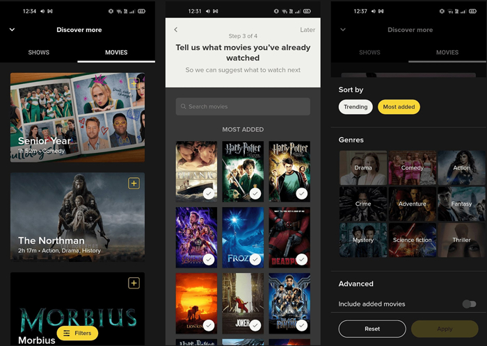 Ücretsiz JustWatch film izleme uygulaması, nelerden hoşlandığınızı göstermek için hızlı bir form doldurmanıza olanak tanır ve oradan, ilgi alanlarınıza uygun özelleştirilmiş öneriler sunmaya başlar.
