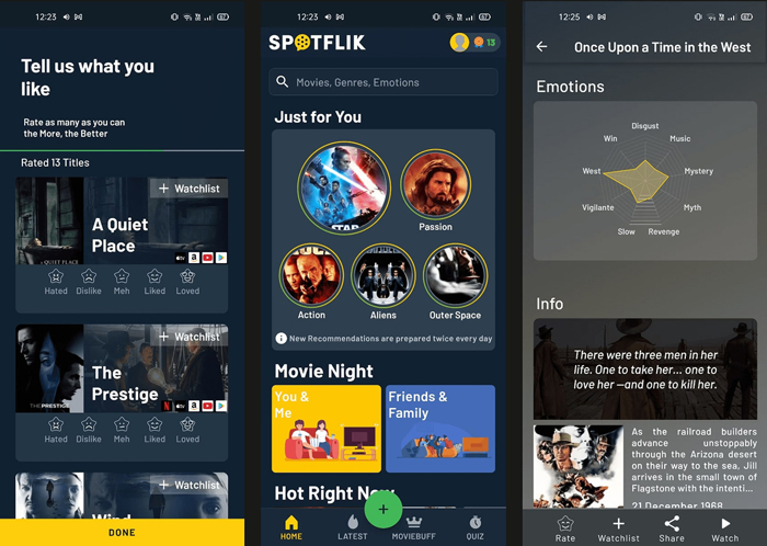 Sırada, yalnızca Android telefon uygulaması Spotflik var. Her şeyden önce yeni filmleri bulmayı basitleştirmeye odaklanan, kullanımı kolay bir ücretsiz film izleme uygulaması arıyorsanız, Spotflik sizin için en iyi seçim olabilir.
